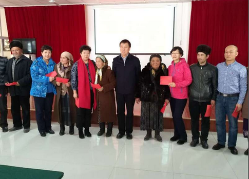 来到亲戚托合提汗·依民老人家里,秘书长翟建芳与老人紧紧的拥抱在一起,亲切地嘘寒问暖,详细地了解家中情况,她认真地教老人读会自己的名字,并对老人说:“今后我们就是一家人了,以后常联系,有困难给我打电话”。临别时,一次次挥手告别,一遍遍深情的嘱托老人“要多保重,照顾好自己的身体”。民族团结的种子已在彼此心中开花结果!