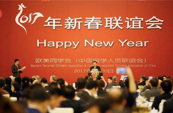 来自四十余个国家和地区的近百位驻华使节、中央和国家有关部委领导、欧美同学会会长会成员、欧美同学会各分会和团体会员单位代表、“千人计划”专家联谊会代表、留学人员代表人士和长期关心支持欧美同学会工作的各界友人欢聚一堂喜迎新春。