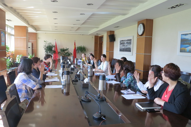自治区党委统战部副部长、机关党委书记刘新友对统战部新一届妇委会提出要求,在统战部机关党委的领导下,在区直机关妇工委的指导下,全力做好妇女工作,为部机关精神文明创建工作贡献力量。(统战部妇委会 摄影:王力源)