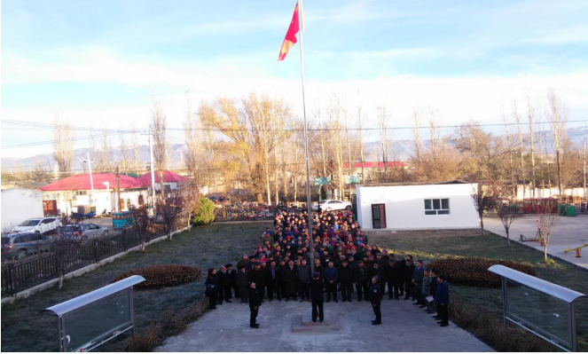 11月7日清晨,13个村、2个社区开展了民族团结一家亲---在国旗下寻找“最美笑容”活动。“访惠聚”工作组、乡驻村领导及干部、村干部、党员、村民、警务室工作人员共3500余人怀着激动的心情相聚在村(社)办公阵地国旗台前,伴随着庄严的《中华人民共和国国歌》,五星红旗冉冉升起,迎风飘扬,全体人员面向国旗唱国歌,行注目礼,向祖国母亲表达最为真挚的祝福。