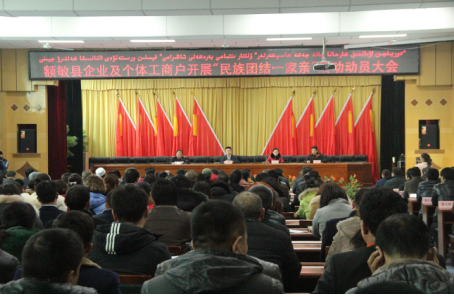 11月24日下午,额敏县组织召开企业及个体工商户开展“民族团结一家亲”活动动员大会。全县驻县企业及个体工商户240余人参加了会议,县委常委、统战部部长李铁钢,县委常委、宣传部长古丽巴尔青出席会议,会议由额敏县政协副主席、食药局局长贾斌主持。