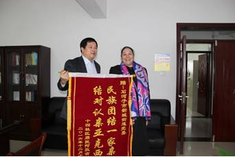 ?12月26日,八师石河子市新城街道十四社区低保户阿孜古力将一面写有“民族团结一家亲 结对认亲亚克西”的锦旗送到新城街道党委书记张全胜手中,感谢她的异族兄弟给予生活上的关心帮助。据悉,在师市开展的“民族团结一家亲”活动中,新城街道党委书记张全胜与其结成亲戚,他了解到阿孜古力身患糖尿病、高血压并发症严重疾病,生活比较困难,张书记多方协调,先后为阿孜古力申请了廉租房,解决了长年住房紧张的问题。