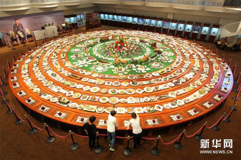 6月14日,一场以硅化木、玛瑙、玉石、火山石、鸡血石等组成的“奇石宴”亮相哈密奇石文化博物馆。该“宴席桌”直径达16.8米,面积约200平方米,摆放了1088道“特色菜品”,吸引了众多游客前来参观。新华社发(普拉提摄)
