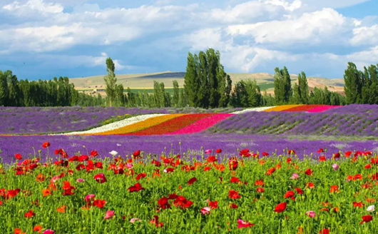 薰衣草花开两茬,在绿稠红瘦的六七月间,不妨走进伊犁,感受这微小的紫花如何拖着静静的长蔓,拖着风,将花香揽入怀抱,让心灵随着那漫天紫色飞向远方。