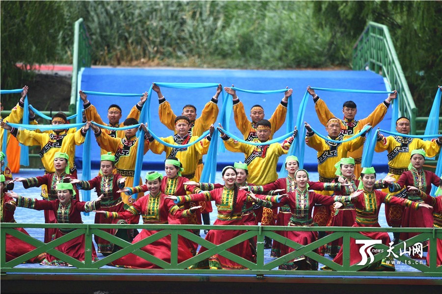 开幕式上,博湖县当地演员表演大型情景剧《梦里水乡 人间仙境》。