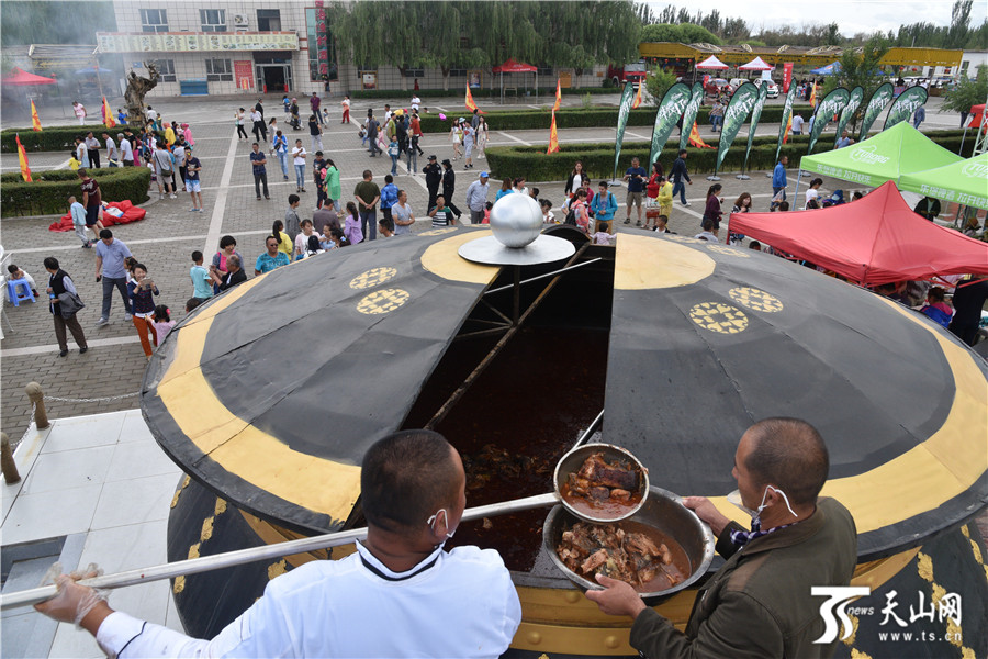 西海第一锅万人鱼宴,精心烹制博湖鲜美野鱼,让众多游客一饱口福。