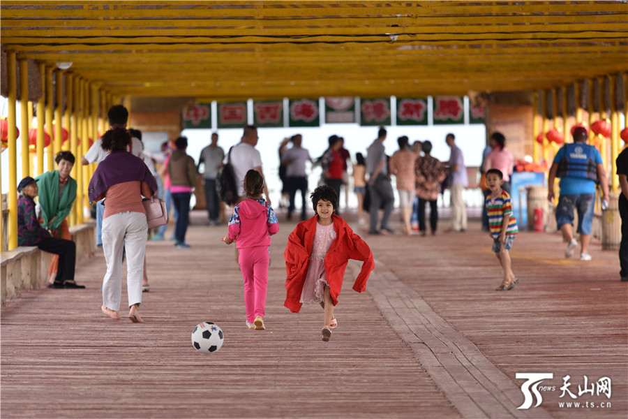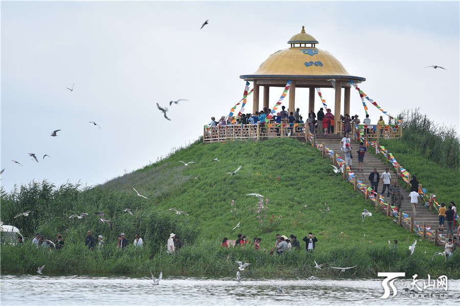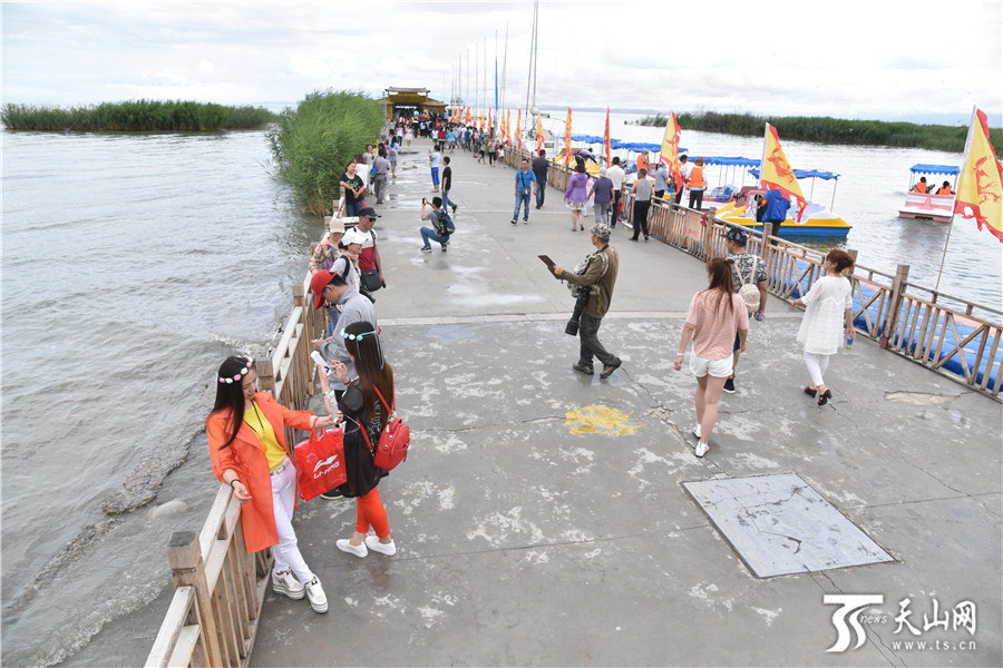 开幕式当天,众多游客来到博斯腾湖大河口(西海渔村)景区游玩。
