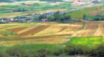 随着大地的起伏,一眼望去,到处是绵延不绝的旱田,犹如一张硕大无比的彩锦跃入眼帘。除了其庄稼地的固有属性外,再没有任何人为添加的观赏元素了。不远处蜿蜒的公路伸向远方,小小的村落点缀在金色、黄色、绿色的庄稼地间,偶尔有一两辆摩托车拖着烟从村里疾驰而出。