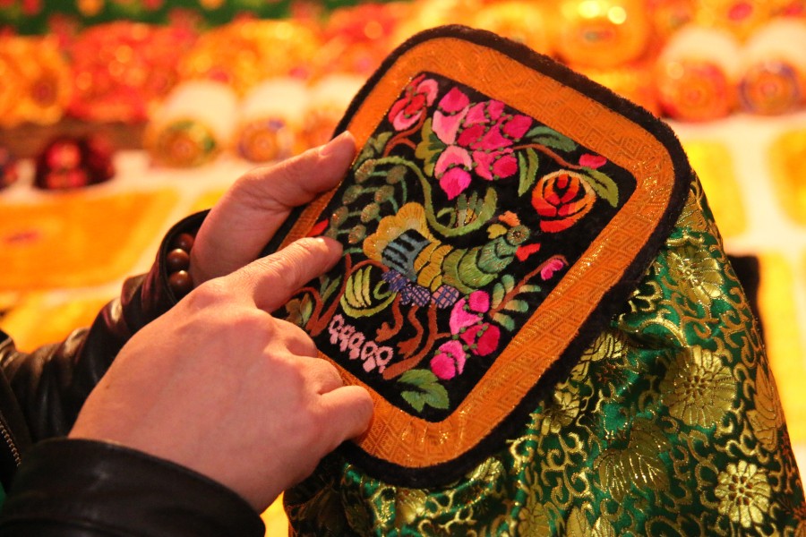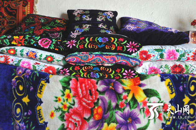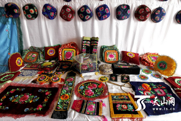 新疆哈密传统刺绣产品展示。资料图