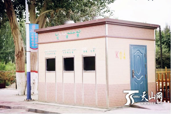 媒体团队步行村内主干道上,街边一座现代化的垃圾房引起了大家的注意。垃圾房很别致,分别设置了双语不可回收、可回收、其他垃圾的窗口,方便村民分类处理。