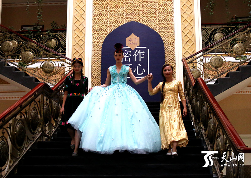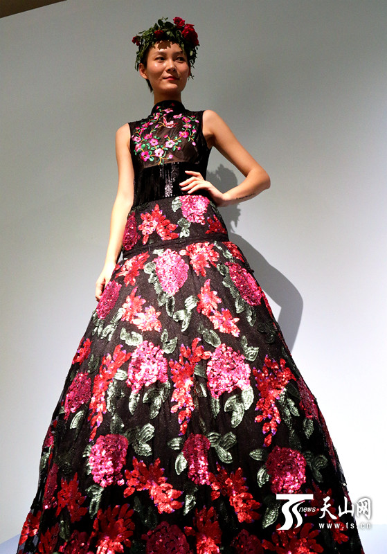 由此开始,秦旭开始和孜勒海木?沙吾尔的女儿——热娜古丽?素批合作,将哈密刺绣引入高端服装设计行业。