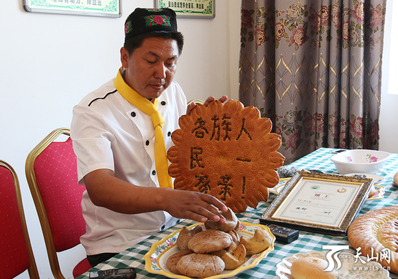 艾尼?热克甫就是新疆万千打馕人中的一员,因为他把馕打出了各式的花样,被称为新疆的“馕王”。?? ??