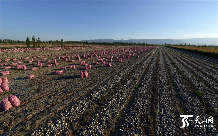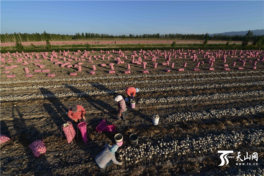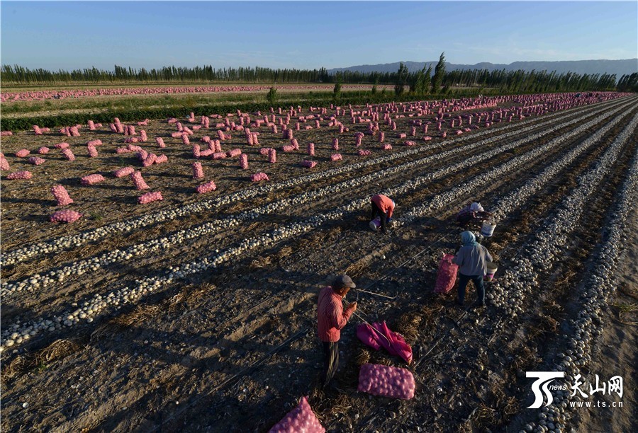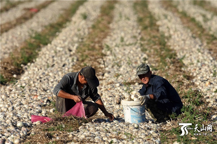 天山网讯(巴音郭楞日报记者确·胡热摄影报道)2016年9月2日,新疆巴州焉耆回族自治县七个星镇夏热采开村农民在收获洋葱。时下正值秋收时节,新疆巴州一派丰收的景象,农民种植的籽用葫芦、玉米、辣椒、洋葱等农作物相继进入成熟期,当地农民加紧采摘、收获,构成一幅多彩秋收图。(宣传处推荐)