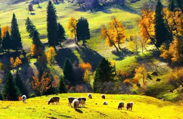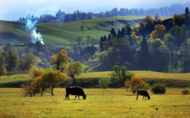 秋意像毡房里飘出的炊烟,在草地上、在树林里,构成了一幅秋韵绵绵的色彩斑谰的秋日那拉提。