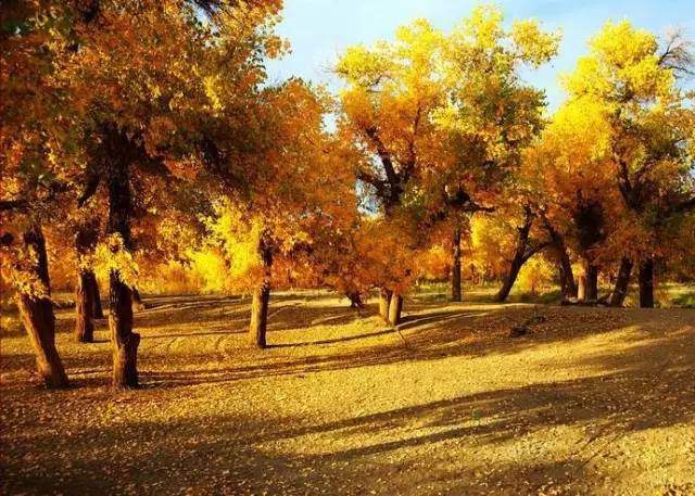 胡杨林上金黄的树叶如同绚烂多彩的蝴蝶,四下飞舞。