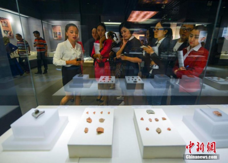 9月18日,作为第五届亚欧博览会——中外文化展示周的重要内容之一,《丝路于阗——文化与艺术的交融:新疆古代和田艺术精品文物展》在新疆博物馆展出。据介绍,本次展览从生产生活、纺织技艺、造像工艺三个方面,汇聚了新疆和田地区出土的近217件/组精品文物,包括陶质、木质生活用品、钱币、纺织品、壁画、木简木牍、雕塑造像等,形象地描绘了世界四大文明在和田交流融汇的历史轨迹,展示了和田所承载的厚重历史文化底蕴。刘新 摄