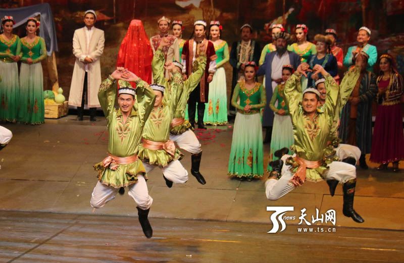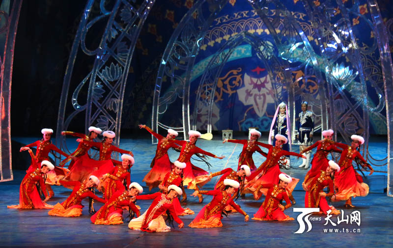 ?天山网讯(记者朱凯莉 张新军摄影报道)驼铃声声、大漠苍穹、萨塔尔琴苍凉低沉的音色伴随着高昂的歌声,将观众带入了迷人的西域风情。9月20日晚,以“艺术编织丝路美景”为主题的第五届中国—亚欧博览会“中外文化展示周”开幕式大型音舞诗画《木卡姆印象》在新疆艺术剧院木卡姆剧场上演。