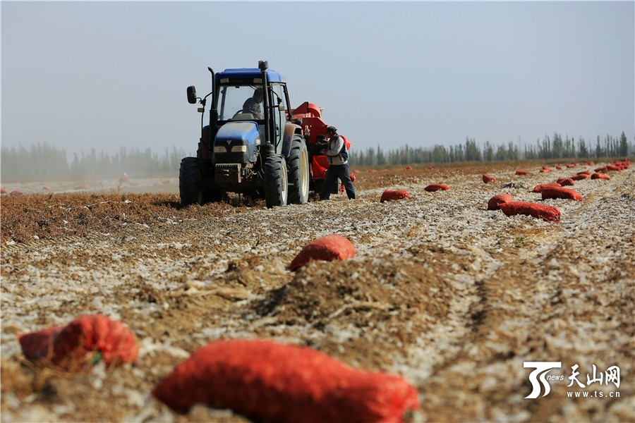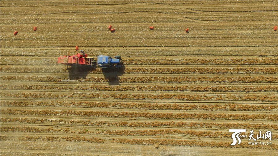 ?天山网讯(通讯员年磊 徐涛摄影报道)又是一年秋收时,位于新疆博斯腾湖畔的博湖县田间农作物进入秋收高峰期,当地农牧民群众趁着秋高气爽好天气,在流金溢彩的田野里忙碌奔波,呈现出一幅幅喜人的丰收景象。