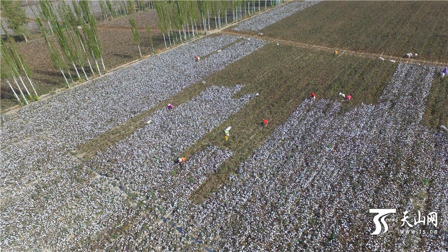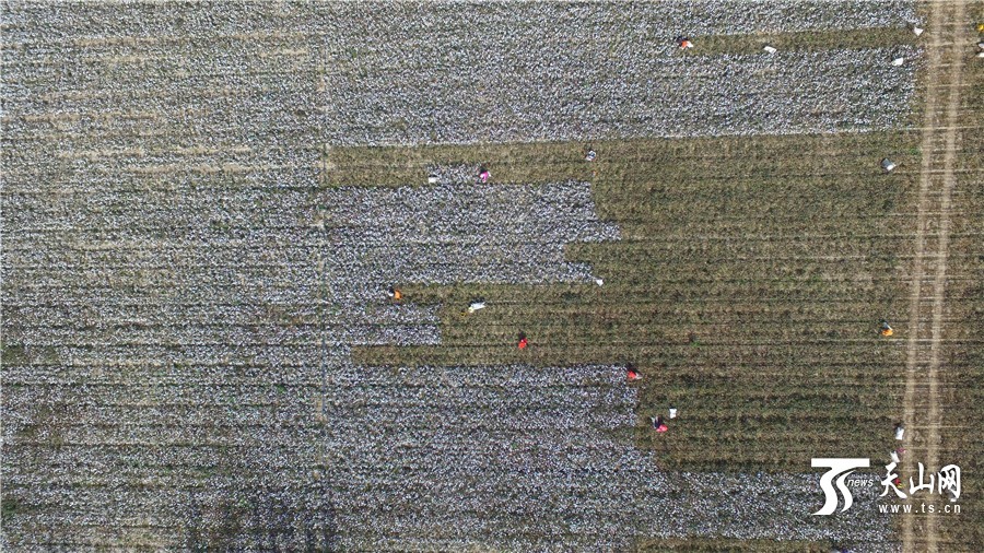 10月8日航拍新疆博湖县博斯腾湖乡库代力克村万亩银色棉田。年磊 摄