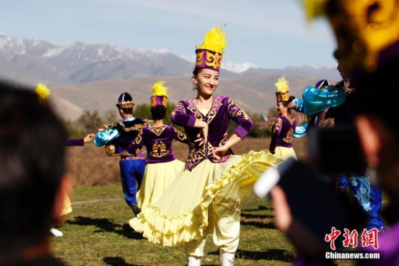 10月12日,在新疆伊犁州那拉提大草原,一场独居特色的民俗节目表演,吸引了众多游客前来观赏。恰逢节庆活动,能歌善舞的哈萨克族男女老少在草原上载歌载舞。据了解,那拉提草原是哈萨克人世代游牧生息的家园,同时也是中国哈萨克族人口居住最集中的地区。中新社记者王小军 摄