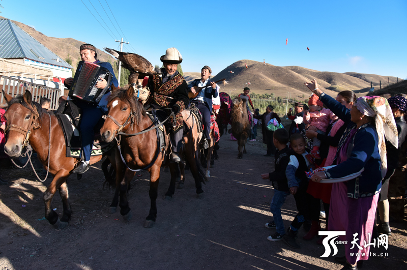 天山网讯(通讯员巴合达吾来提摄影报道)“十一”国庆节期间,伊宁县喀拉亚尕奇乡卡赞奇村“访惠聚”工作组为密切联系群众,宣传发扬优秀传统文化,让各族群众直观感受哈萨克族婚礼文化的盛典,开展了一场哈萨克族传统迎亲婚礼活动。