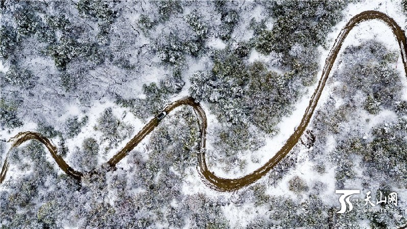 雪后霍城县中华福寿山如一幅绚丽绽放的水墨画