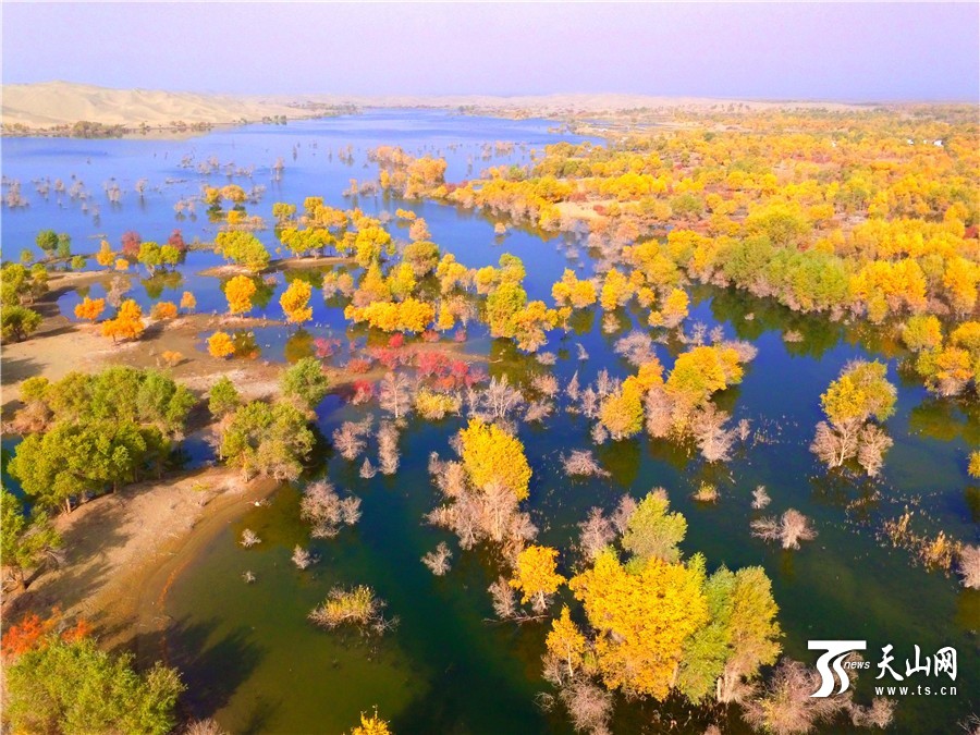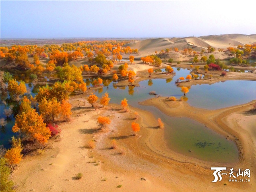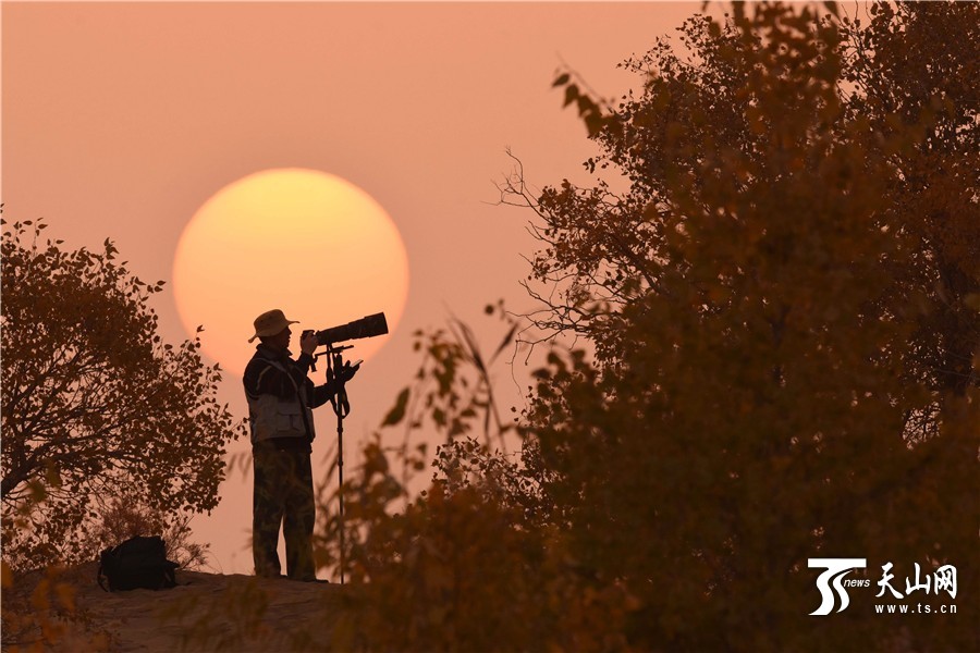天山网讯(通讯员布仁托古斯摄影报道)2016年10月26日-11月2日,笔者来到新疆尉犁县国家沙漠公园、罗布人村寨和喀尔曲格沙漠胡杨景区采风。走进尉犁县塔里木河沿岸数万亩的胡杨林中,壮美的自然景观交替呈现在眼前,曲折绵延,成片的胡杨树叶在秋阳里婆娑起舞,在秋风里翻滚鲜亮的色彩。漫步于这浓郁秋色的胡杨林中,唯有胡杨沾染了灿烂的金黄,点缀着蓝天与湖泊,勾勒出秋日中色彩斑斓的童话世界。