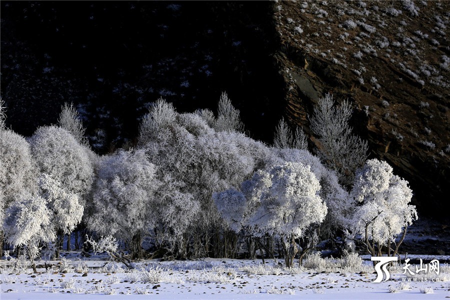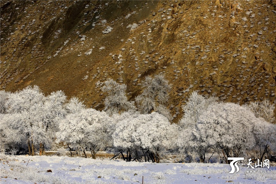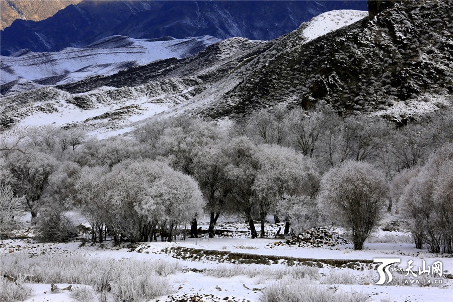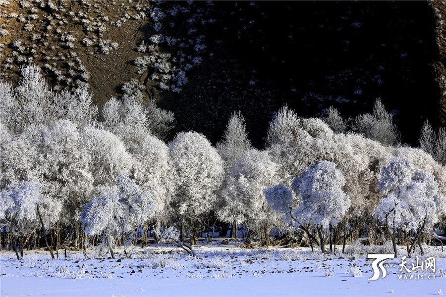 ?天山网讯(通讯员郑永摄影报道)11月1日,新疆温泉县鄂托克赛尔河谷出现唯美的雾凇景观,在蓝天的映衬下,玉树琼枝,晶莹剔透,美轮美奂,令人赏心悦目,走在其中犹如进了一个美丽的童话世界。