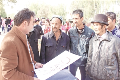 胡杨节期间,艺术家在写生。