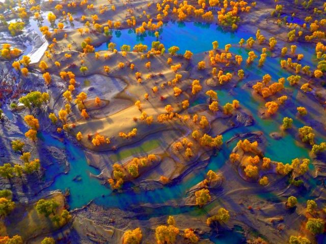 秋天来临,又到了胡杨林最灿烂的季节。2016年10月30日,摄影师来到新疆塔里木河畔,航拍了塔里木河尉犁县段的胡杨林,给我们带来大自然的震撼场景与绚丽色彩。摄影:CICPHOTO/确·胡热(据新华社客户端)