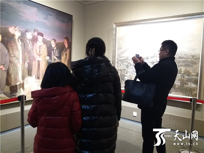 12月25日,第四届新疆油画展开幕。图为观众在欣赏作品。
