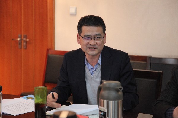 自治区党委统战部副部长刘新友主持座谈会。(董成平摄影)
