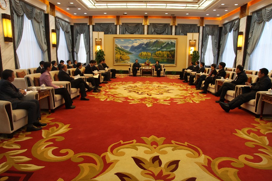中央统战部常务副部长张裔炯、副部长斯塔、副部长兼秘书长冉万祥参加接见。(办公室 摄影:董成平)