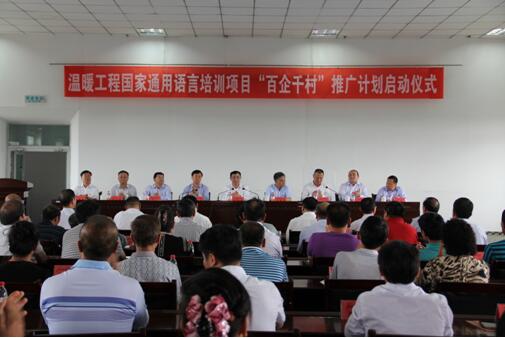 马培华说,新疆发展事关全国改革发展稳定大局,事关祖国统一、民族团结、国家安全,事关实现“两个一百年”奋斗目标和中华民族伟大复兴,牵动着亿万人民的心。马培华强调,治贫先治愚,扶贫先扶智。新疆地区地处西北边陲,生存环境差,贫困人口多,多民族共居,这对扶贫开发工作提出了更高的要求。在驻疆企业和少数民族村开展国家通用语言培训,宣传中华传统文化,不仅是维护国家统一、促进民族团结的基础性工作,也是深化新疆改革开放的基本要求,它有利于帮助少数民族群众迅速提升技能,开拓眼界,帮助少数民族群众就业增收,对推动新疆,特别是南疆地区逐步接受现代化和对外交流,逐步形成利益共同体和文化认同体,发展成一个包容、开放、创新的多元文化的繁荣社会具有重要意义。马培华指出,“百企千村”推广计划是国家通用语言培训项目的进一步探索和创新,其管理制度和项目模式还需要在实践中不断成熟和完善。要充分认识项目的重要意义,加强组织管理,切实提高培训效果;要把推广计划同自治区“访民情、惠民生、聚民心”活动紧密结合;要严格审批流程,明确工作职责,搞好协调合作,发挥各自优势,共同做好项目入选单位的甄别、培训、监管等工作;要加强宣传,形成上下宣传的大格局,让真正有需要的企业和少数民族村加入到项目中来;要善于总结经验,切实加强管理,深入调查研究,不断提升项目品质;要不断丰富资源、提升项目的服务水平,更好地为新疆经济社会发展和人民富裕幸福提供智力支持。 董新光介绍了“百企千村”推广计划有关情况。他说,中华职教社在新疆实施温暖工程国家通用语言培训项目已投入资金2500多万元,在新疆7个地州的18个县市和新疆生产建设兵团三个师开展了培训,举办培训班149期,共培训维吾尔族青壮年15239人,就业率达86 %。中华职教社还与新疆自治区人社厅共同建立了60个国家通用语言培训点。项目取得了良好的社会效果,深受少数民族群众的欢迎。“百企千村”推广计划是温暖工程国家通用语言培训项目的深化和拓展,计划在4年内,进一步加大投入力度,支持项目开展,选择不低于100家企业和1000个少数民族村落,通过捐赠电脑、投影仪、教材等设备,并安装《国家通用语言培训系统》,开展国家通用语言培训,宣传中华民族传统文化。自治区民语委办公室副主任、自治区民语委驻喀什地区英吉沙县龙甫乡托喀依村工作组副组长陈少青在启动仪式上发言,介绍了学习和推广国家通用语言培训经验。