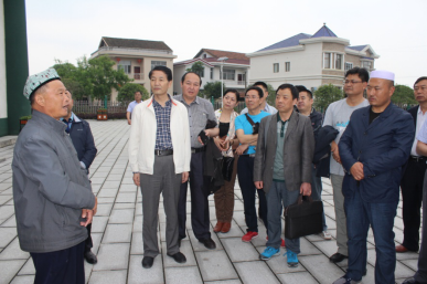 5月27日,培训班学员在全国民族团结模范乡桃源县枫树维吾尔族回族乡参观,听取当地宗教人士介绍情况。