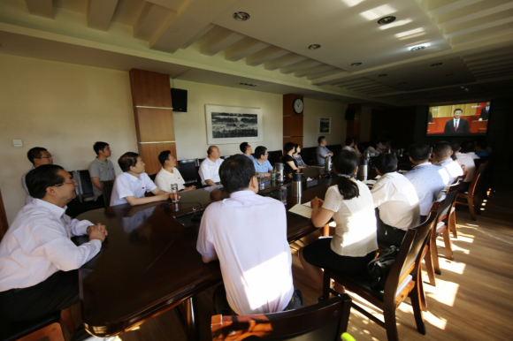 自治区政协副主席、自治区党委统战部部长程振山与部机关全体党员一起收看“庆祝中国共产党成立95周年”大会现场直播。