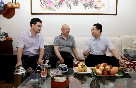 自治区政协副主席、自治区党委统战部部长程振山“七一”前夕看望慰问困难党员杨广平。