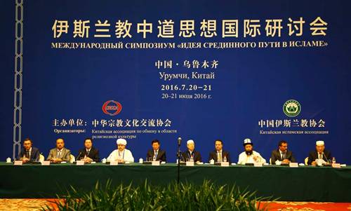 2016年7月20日至21日,中华宗教文化交流协会和中国伊斯兰教协会在中国新疆乌鲁木齐共同举办了以“倡导中道思想,反对极端主义”为主题的“伊斯兰教中道思想国际研讨会”。来自中国、俄罗斯、哈萨克斯坦、塔吉克斯坦、吉尔吉斯斯坦、乌兹别克斯坦的知名伊斯兰教界人士、著名专家学者和政府代表针对世界一些地方暴恐极端问题频发的严峻现实,深入探讨伊斯兰教的中道精神,分享各国反对极端的成功经验,矢志维护伊斯兰教良好形象,形成重要共识。与会代表发表共同倡议书如下: