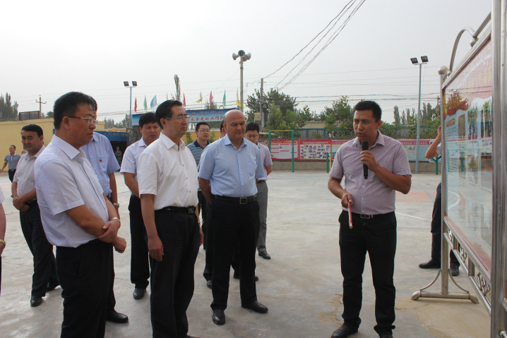 自治区政协副主席、自治区党委统战部部长程振山在洛浦县多鲁乡巴什艾日克村调研民族团结工作。