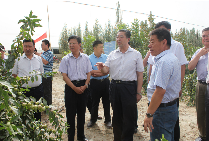 自治区政协副主席、自治区党委统战部部长程振山在于田县新建225团,了解“两场一区”新建团场暨兵地融合工作情况。