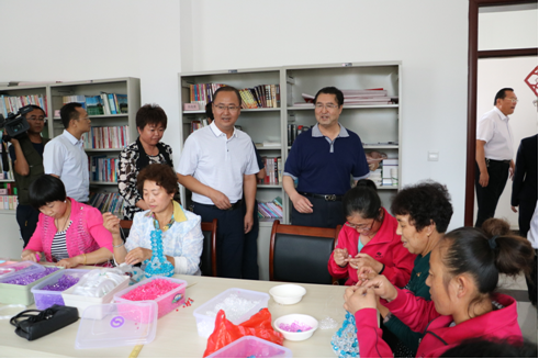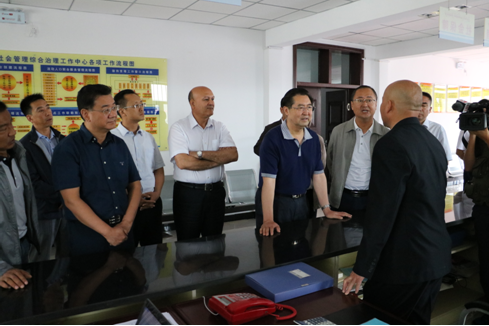 自治区政协副主席、统战部部长程振山在在哈密市巴里坤县奎苏镇综合服务大厅了解社会管理综合治理和小城镇建设情况。