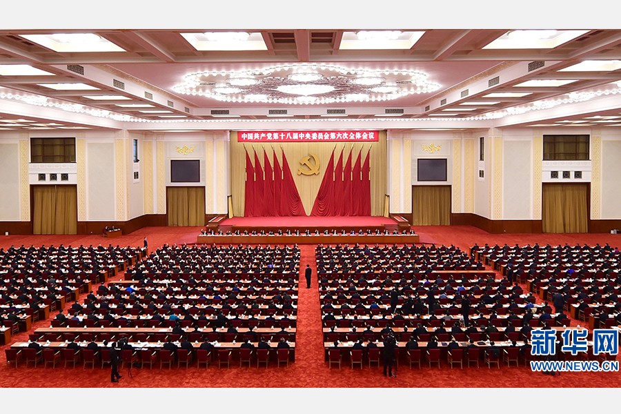 中国共产党第十八届中央委员会第六次全体会议,于2016年10月24日至27日在北京举行。中央政治局主持会议。 新华社记者 庞兴雷 摄