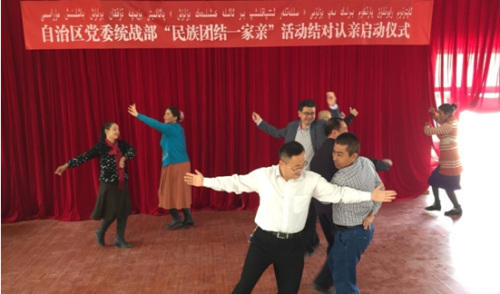 首批结对认亲的21名党员干部分别向两个村的“三老”人员、贫困户、宗教人士等赠送了“连心卡”,互致问候,结为亲戚。“连心卡”用汉、维两种文字留有结对双方姓名、联系方式等,为今后双方走动互动带来便利。大家握手相拥、合影留念,跳起欢快的麦西来甫,表达喜悦心情,现场洋溢着浓浓的亲情。