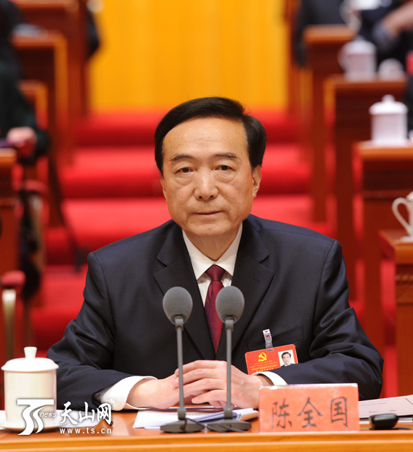 大会完成各项议程后,陈全国在热烈的掌声中发表了讲话。他指出,美好蓝图已经绘就,新的征程已经开启。打牢新疆社会稳定和长治久安基础,打赢脱贫攻坚战、全面建成小康社会,是今后五年我们肩负的历史重任。全区各级党组织要强化使命担当,组织动员广大党员和各族干部群众,坚定不移贯彻落实以习近平同志为核心的党中央治疆方略,用党中央确定的社会稳定和长治久安总目标统领新疆各项工作,努力把自治区第九次党代会描绘的宏伟蓝图变为美好现实,建设团结和谐、繁荣富裕、文明进步、安居乐业的社会主义新疆。要努力建设团结和谐的新疆。紧紧围绕社会稳定和长治久安总目标,积极推进新疆治理体系和治理能力现代化,始终坚持稳定压倒一切,扎实有效地维护社会稳定、巩固发展民族团结、切实增强宗教和谐,把全区2300多万各族干部群众的智慧和力量凝聚到建设美丽新疆、共圆祖国梦想的伟大事业上来,筑牢维护祖国统一、维护民族团结、维护社会稳定的钢铁长城。要努力建设繁荣富裕的新疆。正确处理稳定和发展的关系,织密稳定发展的经纬线,通过维护稳定营造良好发展环境,牢固树立五大发展理念,主动适应经济发展新常态,大力推进改革创新、扩大对内对外开放,用好供给侧结构性改革的重要载体,抓住丝绸之路经济带建设的重大机遇,建设好丝绸之路经济带核心区,推动经济社会更好更快发展,打牢社会稳定和长治久安的物质基础。要努力建设文明进步的新疆。坚持人民主体地位,切实保障各族人民的民主权利,发扬人民民主,倾听人民呼声,回应人民期待,密切同各族人民群众的血肉联系。坚定不移推进依法治疆,坚持法律面前人人平等,把司法公正的阳光投射到各族群众的心里、充分体现社会公平正义。充分发挥社会主义核心价值观的引领作用,构建覆盖城乡的公共文化服务体系,大力传播现代文化理念和生活方式,为各族群众提供充足的精神食粮和丰富的文化生活,形成崇尚科学、健康向上、现代文明的浓厚氛围。要努力建设安居乐业的新疆。坚持各族群众对美好生活的向往就是我们的奋斗目标,把各族群众的根本利益放在心中的最高位置,带着感情、带着关爱、带着责任,多办一些顺民意、惠民生的实事,多解决一些各族群众牵肠挂肚的问题,凡是承诺了的就一定要兑现,做到件件有着落、事事有回音,让群众看到变化、得到实惠、充满希望,努力使各族群众享有充分的就业、普惠的教育、良好的医疗、全面的社保、舒适的住房、便利的交通、美好的环境,不断增强获得感和幸福感,切身感受到党的关怀和祖国大家庭的温暖。
