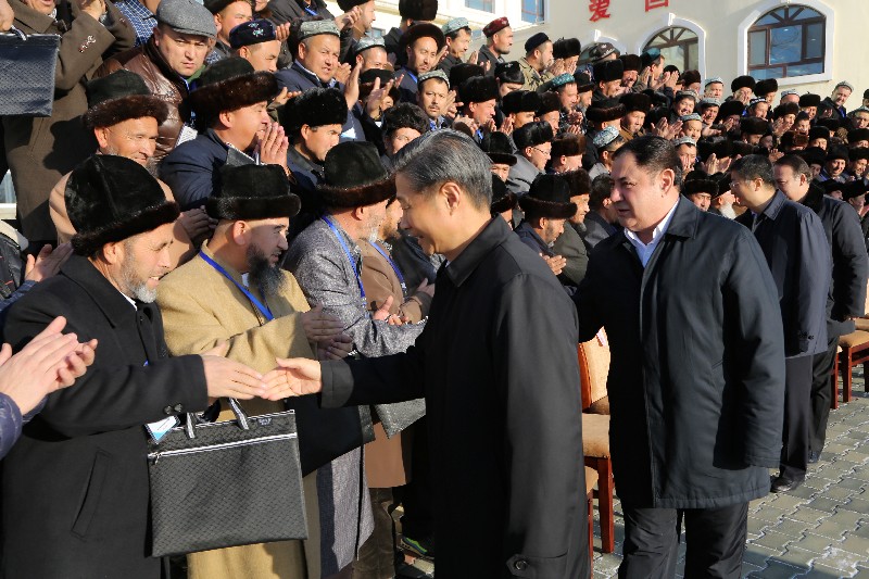 11月21日上午,自治区伊斯兰教爱国宗教人士第一期集中培训班开班式在乌鲁木齐市社会主义学院举行。自治区领导朱海仑、肖开提·依明、李学军、吉尔拉?衣沙木丁与参加培训的学员亲切握手。