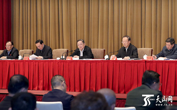 1月18日,推进新疆生产建设兵团深化改革动员大会在乌鲁木齐召开。中共中央政治局常委、全国政协主席、中央新疆工作协调小组组长俞正声出席大会并作动员讲话。新疆日报记者崔志坚摄